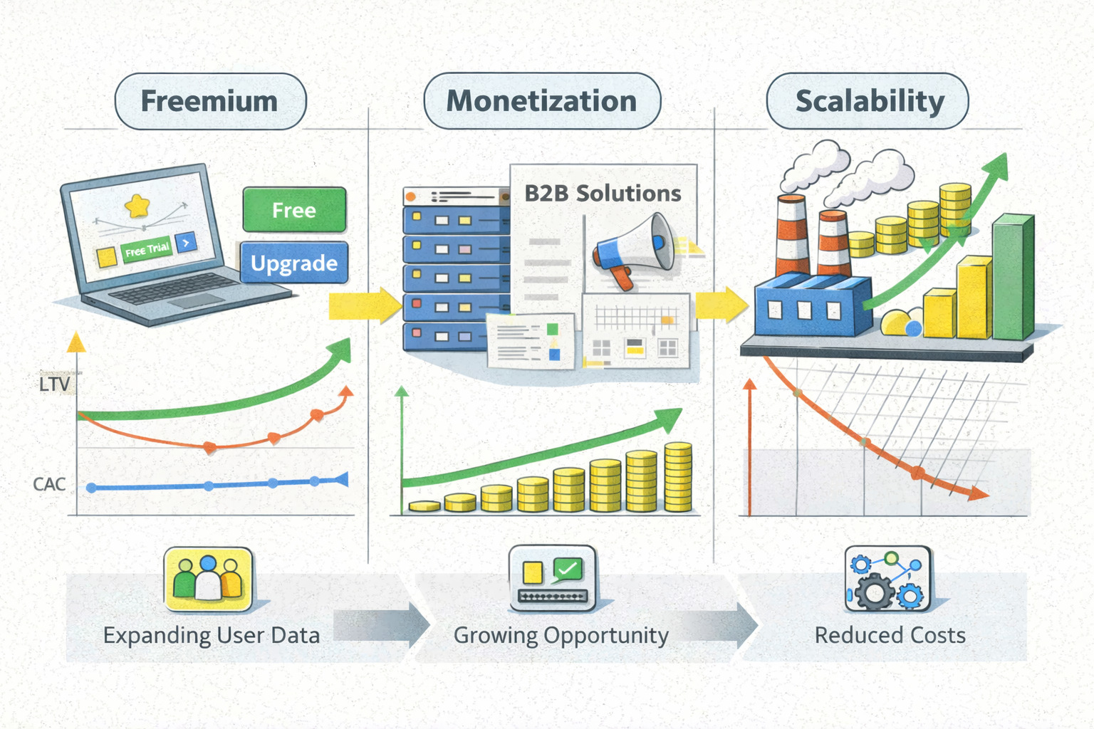 서비스 성장에 따른 수익 모델의 진화 과정을 보여주어야 합니다. 초기 'Freemium' 모델이 데이터 축적 후 어떻게 B2B 솔루션이나 광고 모델로 확장되는지, 그 단계별 트리거는 무엇인지 논리적으로 연결하십시오. 이때 IR제작 시 중요한 것은 'Why Now, Why This'입니다.